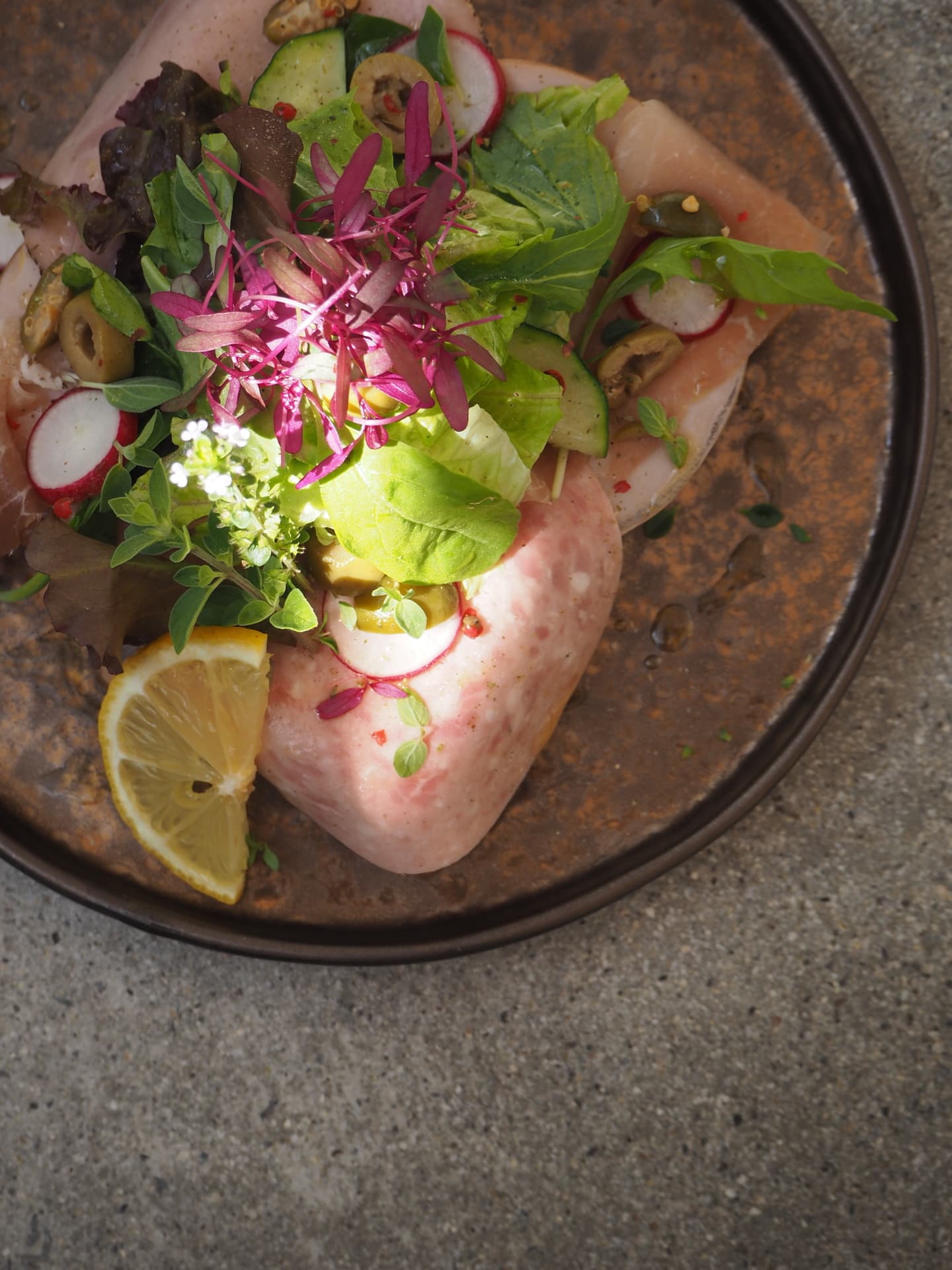 Open hand of various hams